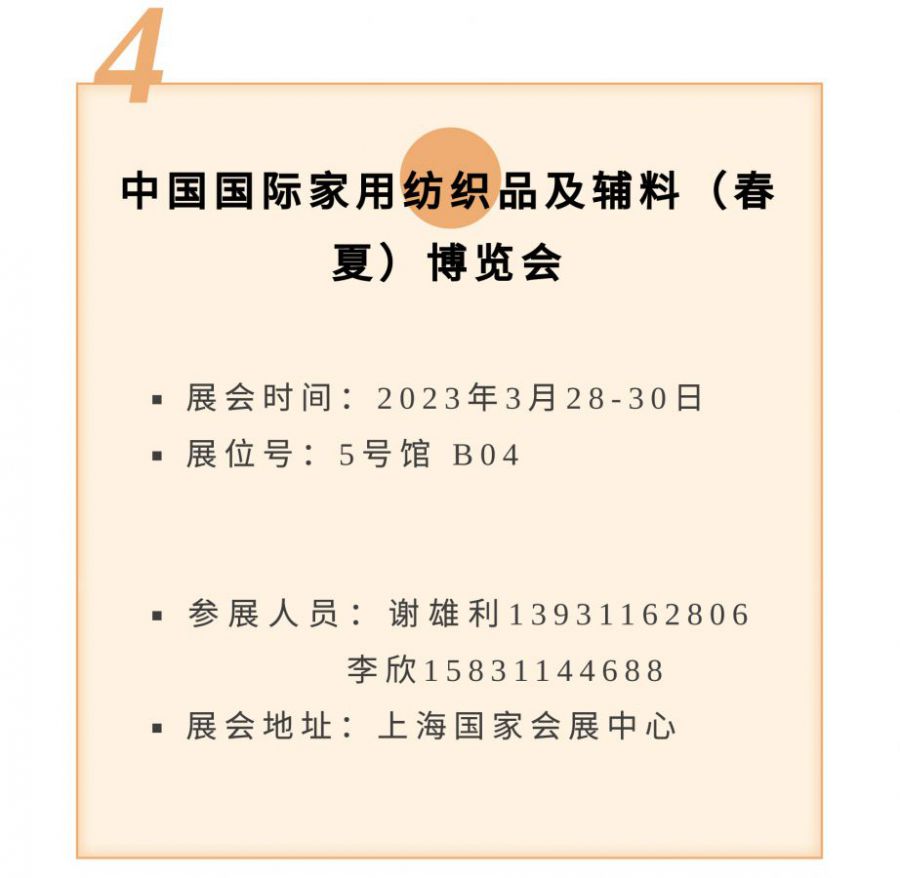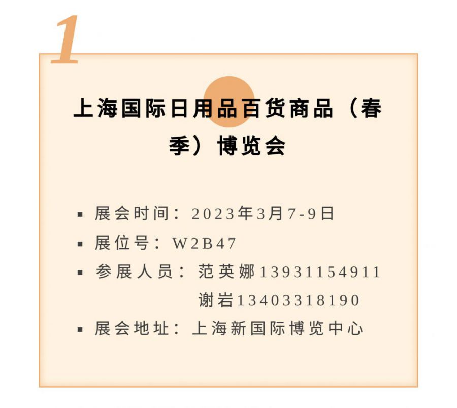 叮咚丨新樂(lè )華寶塑料制品有限公司3月份展會(huì )速遞 上一個(gè):廣交世界,互利天下,新樂(lè )華寶塑料制品二期展位號:浴室用品16.2H30 /家居用品15.2B16-17 下一個(gè):2023年日本東京(春季)國際消費品及禮品博覽會(huì )